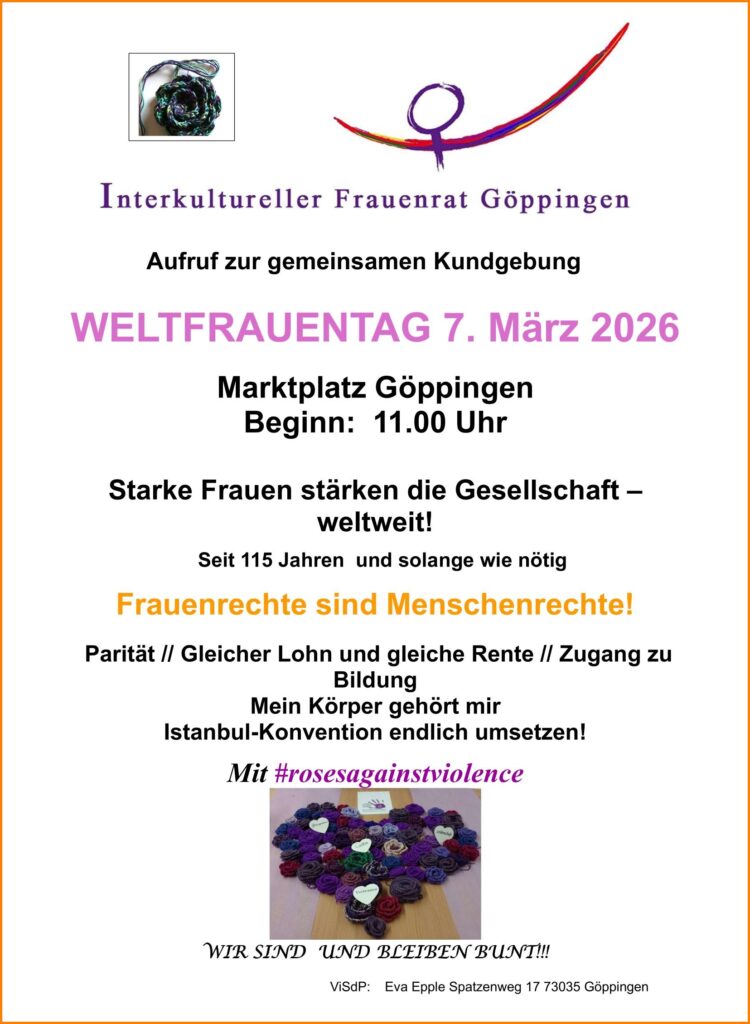 Es rufen auf: der Interkulturelle Frauenrat Göppingen und allen interkulturellen Gruppen, die im Frauenrat vertreten sind.
