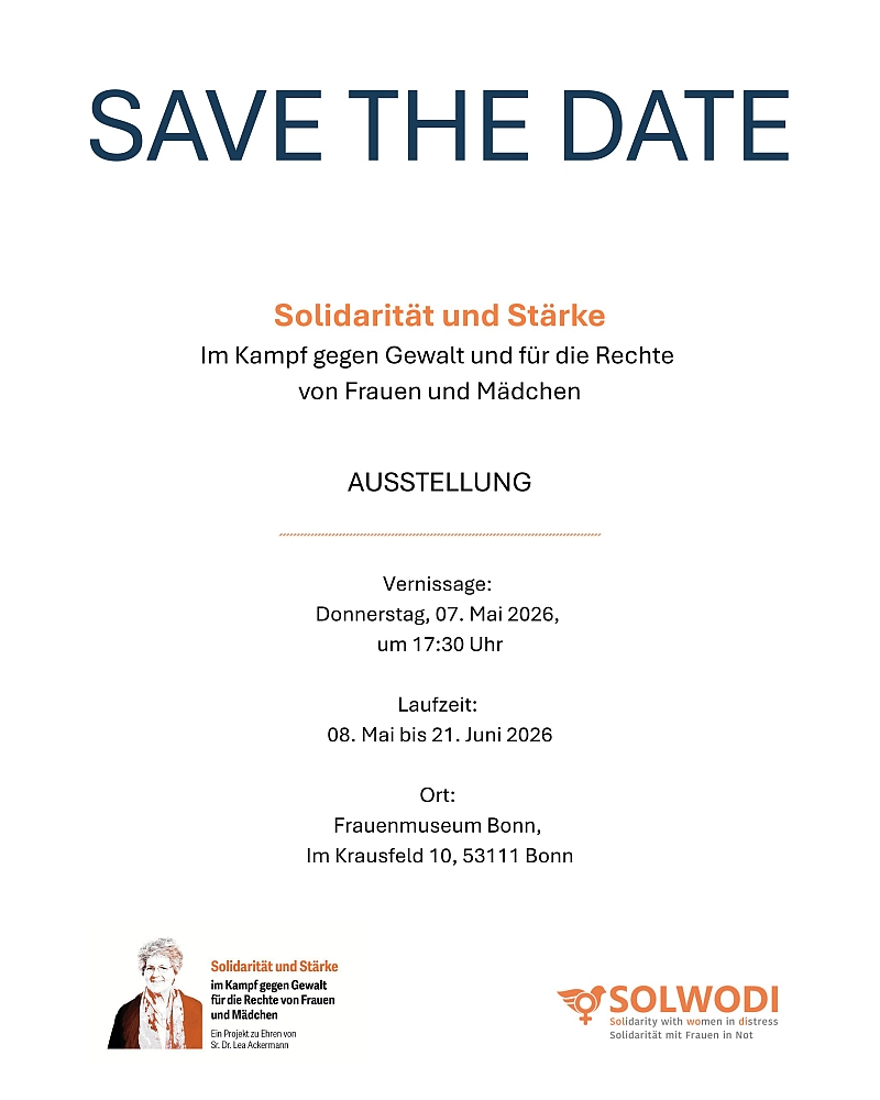 „Die Ausstellung widmet sich den drängenden Themen Gewalt gegen Frauen und Mädchen mit Flucht- und Migrationshintergrund und beleuchtet die Herausforderungen, mit denen sie konfrontiert sind. Wir führen die Ausstellung zu Ehren von Sr. Dr. Lea Ackermann durch, die im Jahr 2023 verstorben ist und als Gründerin von SOLWODI unermüdlich für die Rechte und den Schutz dieser Frauen gekämpft hat.